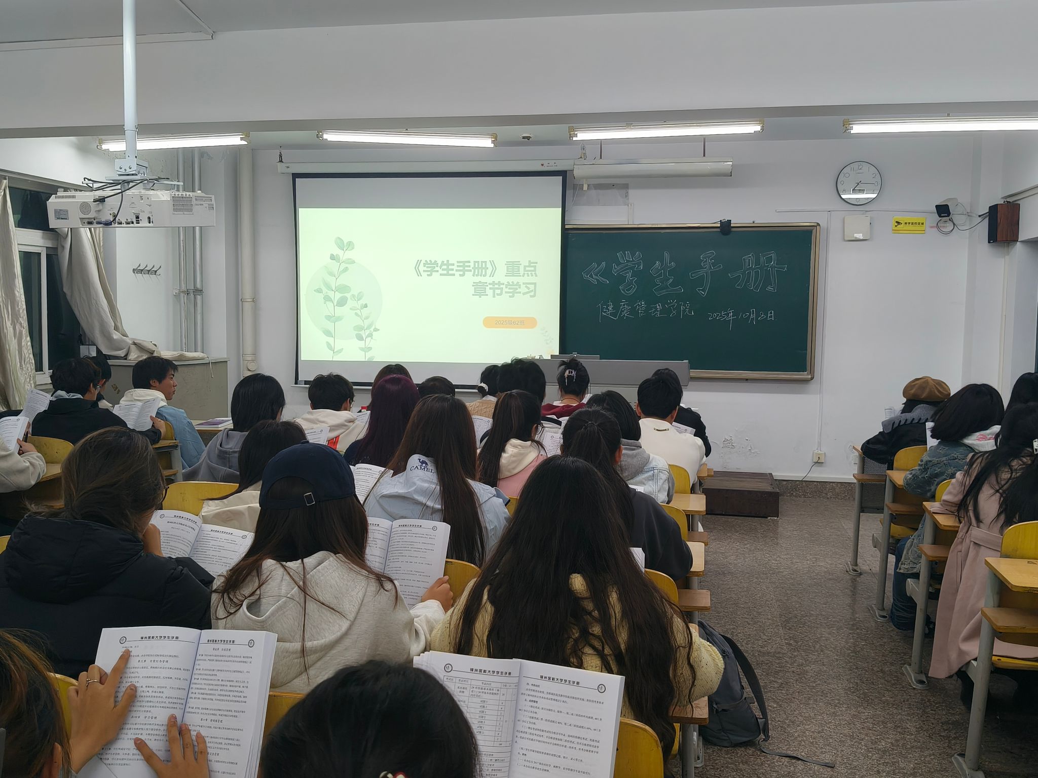 此外,辅导员老师、新生学长带头领学“一训三风”精神和《beat365平台官方网站学生手册》重点章节,让新生对《学生日常管理办法》《违纪处分办法》《学生资助管理办法》等学校规章制度有了更加深刻的了解,也为优良学风建设和新生良好习惯的养成打下基础。