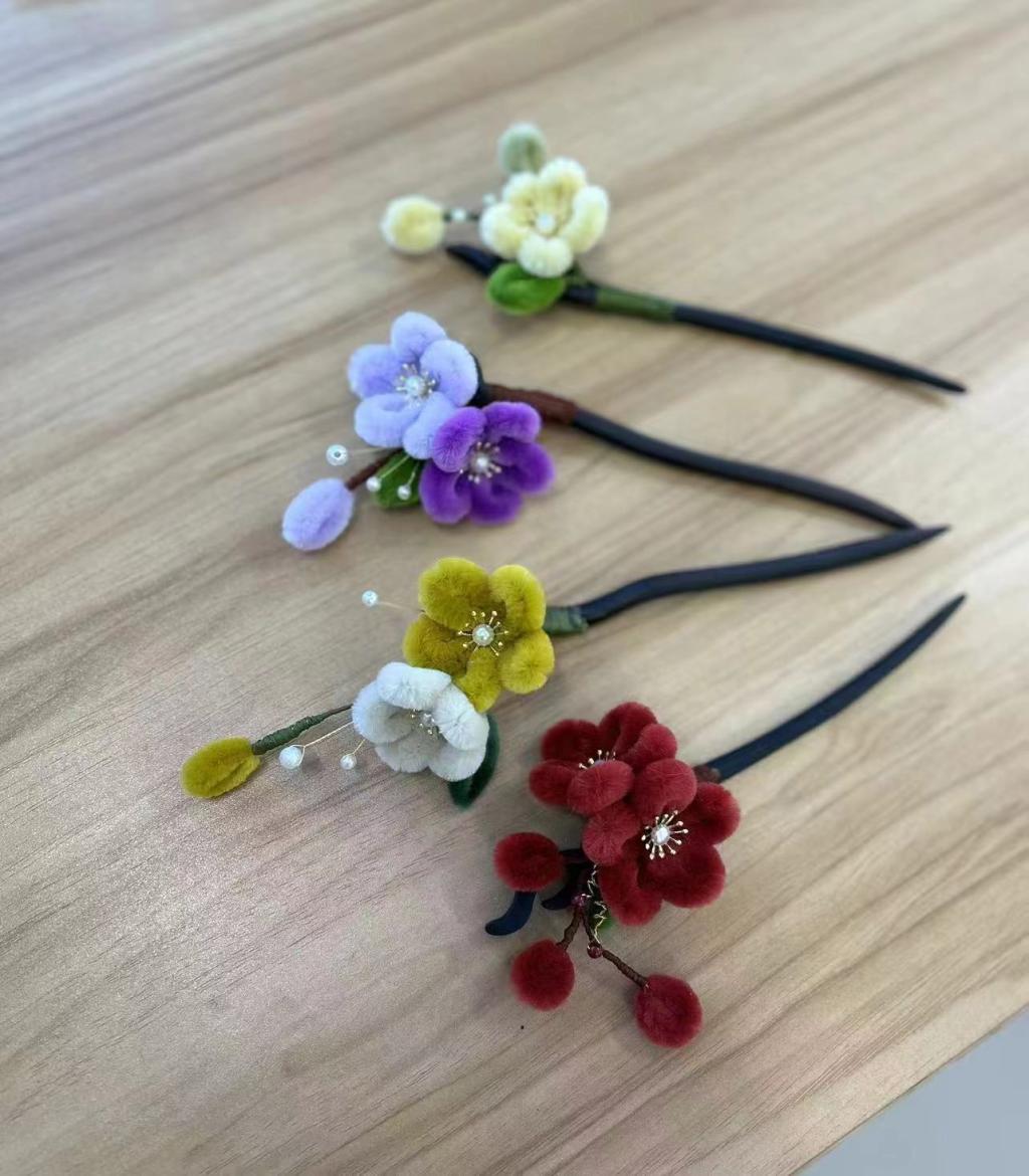 绒花发簪源自南京,有着悠久的历史,技艺源于唐朝,并在2006年被列为江苏省非物质文化遗产。绒花不仅是一种装饰品,也是中国传统文化的重要组成部分,代表了精湛的手工艺和深厚的文化底蕴。