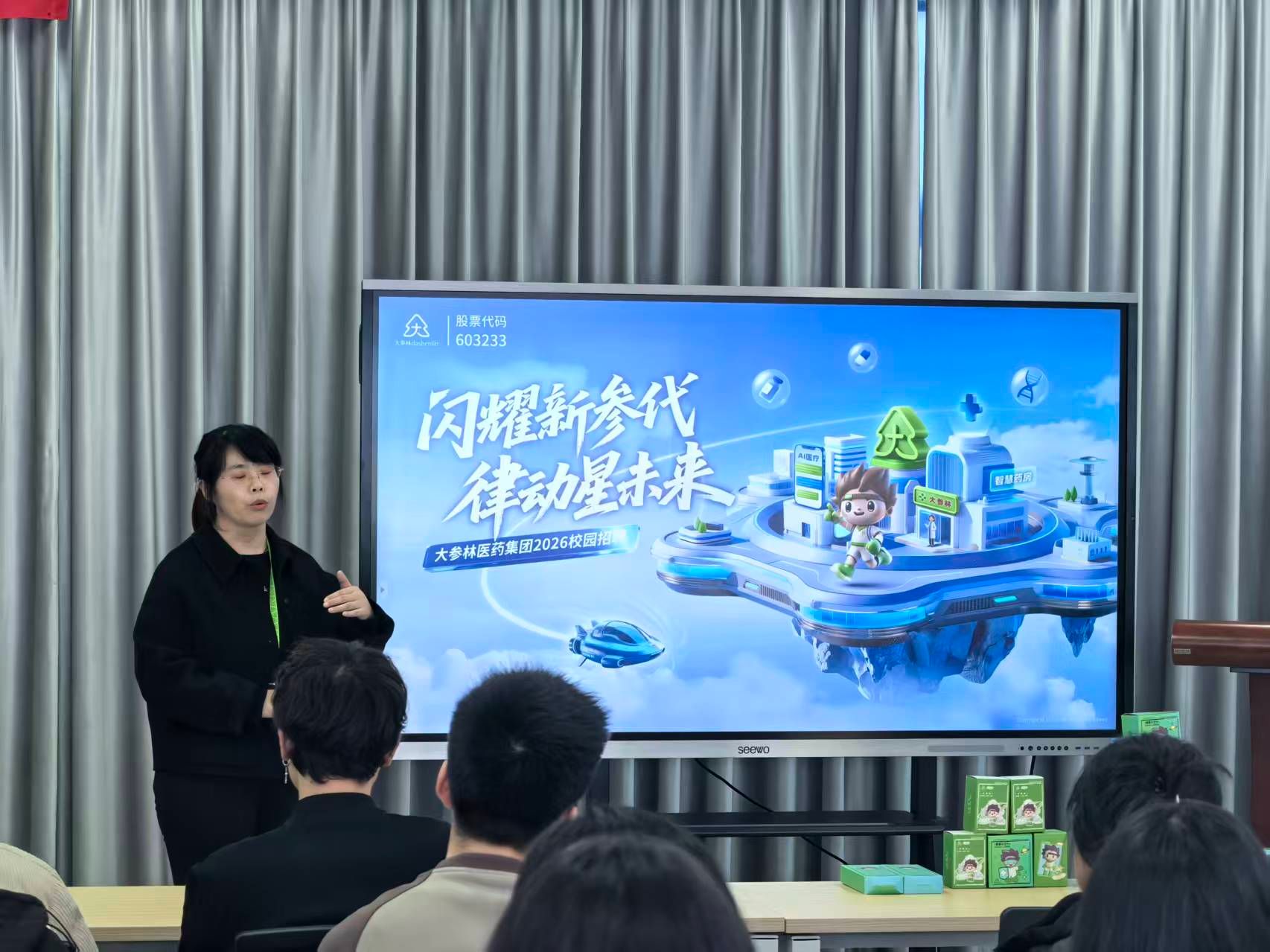 大参林药业代表详细介绍了企业规划、人才培养等情况,并发布了针对学院学子的各类优质岗位,涵盖运营管理、医保服务等方向。此次宣讲会还特别设置互动提问环节,其间同学们不但积极投递简历,还就岗位职责、职业发展等踊跃提问,将会场氛围推向高潮。