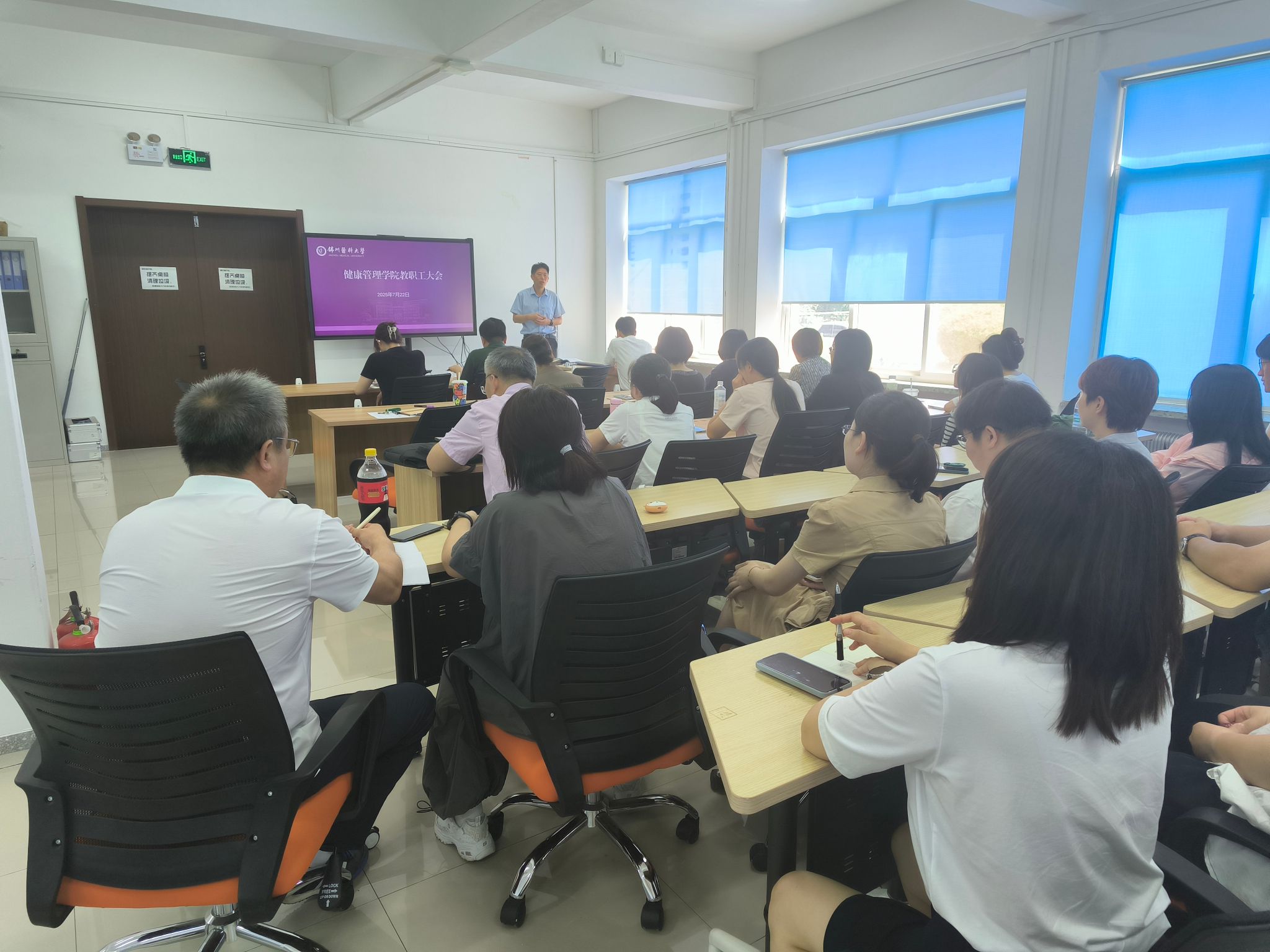 马春宇向全体教职工介绍了新任领导班子及新任科级干部、教学秘书、科研秘书和新引进博士情况,同时对学校将原健康管理现代学院拆分并更名为beat365平台官方网站的重大意义及学院的未来发展规划做了解释说明,未来学院要以健康管理学的学科建设为龙头,以现代产业学院建设为路径,加强公共事业管理、医疗保险、健康服务与管理专业建设,提升人才培养质量。他充分肯定了原健康管理现代产业学院上半年取得的各项工作成绩,对学院暑期及下半年工作进行整体部署,在与中国平安财产保险有限公司辽宁分公司、大象营养供应链管理有限公司等企业合作的基础上,继续拓宽合作渠道,推进现代产业学院建设工作。
